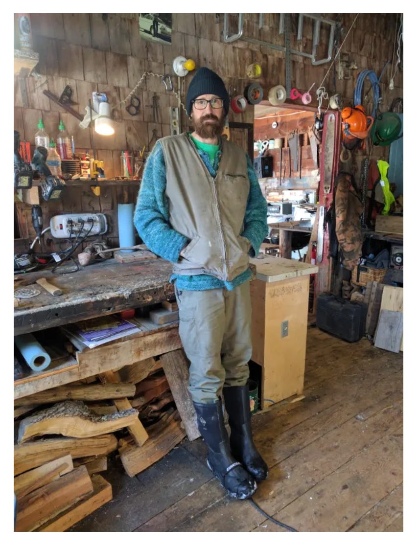 Listen to a radio story about the many friend who helped Huxley (a.k.a. Gardiner Waldeier) raise the frame for his House Built From Trees in Maine.