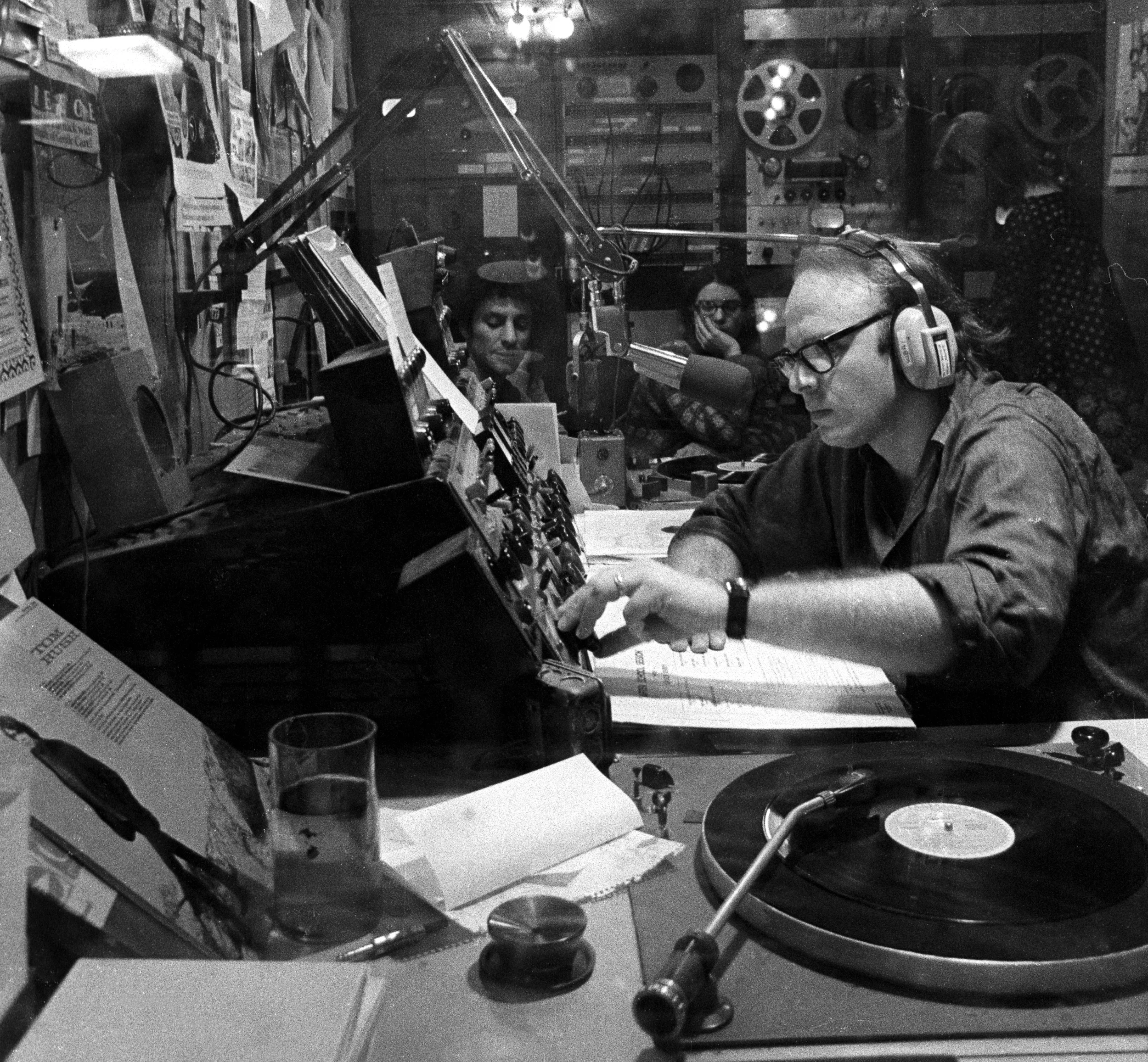Read a story in Current about the free-form radio pioneer Bob Fass. That's Abbie Hoffman to the left of the microphone in the WBAI control room.